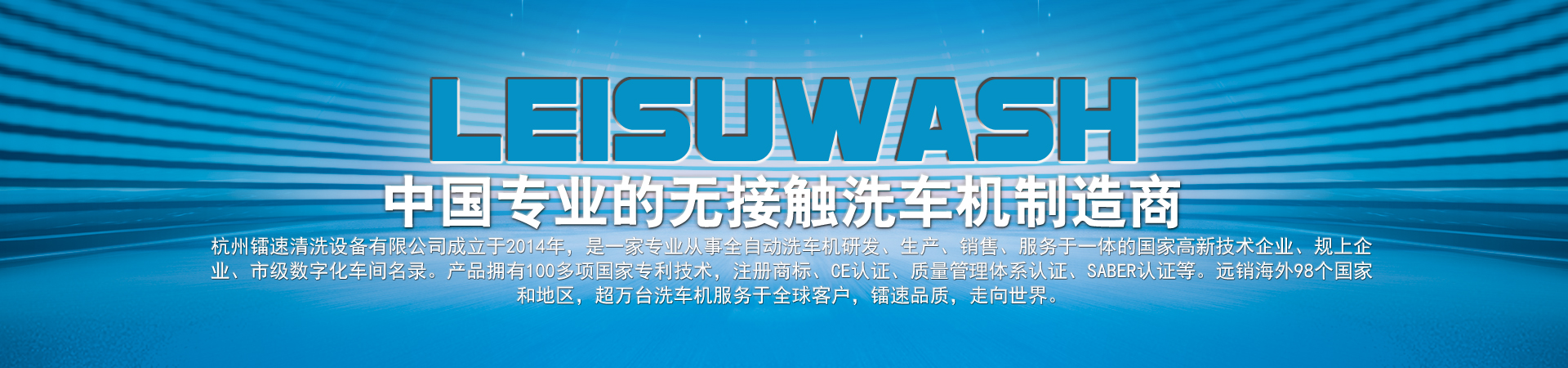 杭州鐳速清洗設(shè)備有限公司成立于2014年,是一家專業(yè)從事自動洗車機研發(fā)、生產(chǎn)、銷售、服務(wù)于一體的國家高新技術(shù)企業(yè),注冊資金2000萬元。匯聚了一批專業(yè)的技術(shù)創(chuàng)新團隊,與時俱進,不斷創(chuàng)新,研發(fā)生產(chǎn)出質(zhì)量過硬、技術(shù)領(lǐng)先的全智能電腦洗車設(shè)備,是國內(nèi)集洗護一體全自動汽車清洗系統(tǒng)的開拓者和領(lǐng)跑者。 鐳速公司一步一個腳印,一步一個臺階,通過不斷的努力和鉆研,厚積薄發(fā),從一家名不經(jīng)傳的小企業(yè),走到今天,成為中國洗車機行業(yè)出口最多的企業(yè)。鐳速品質(zhì)正逐步成為中國洗車機行業(yè)的高品質(zhì)代名詞,真正進入國際一線洗車機行列,打造贏得全球信賴的中國品牌!